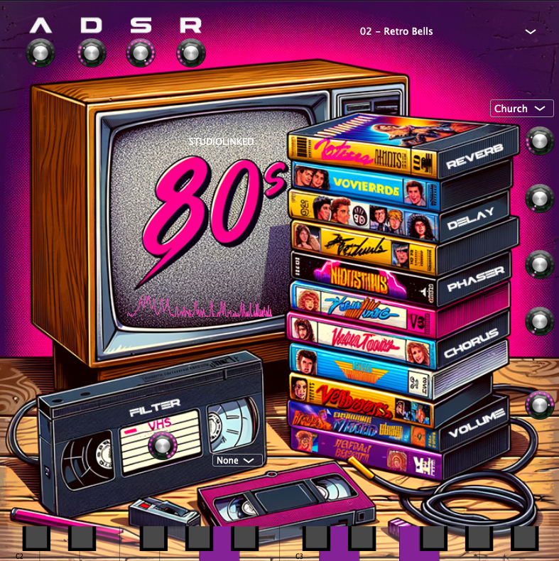 80s VST - is a virtual instrument plugin containing 37 retro rare instruments. Inspired by 80s TV shows and music like Purple Rain by Prince.