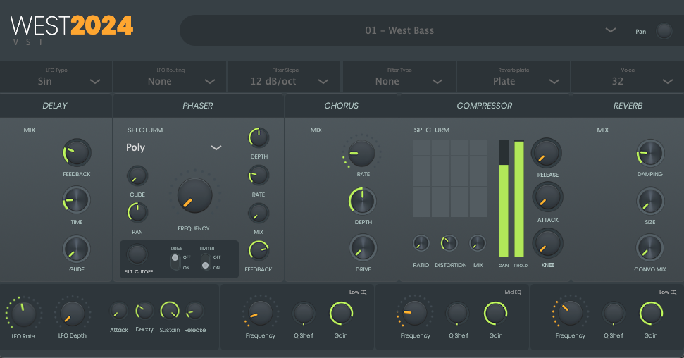 WEST 2024 is a new advanced VST Plugin for Westcoast productions. Includes 75 high quality Bass, Leads, Keys, Pads and Sound Fxs. Inspired by DJ Mustard, Dj Quick, DJ BattleCat and more.